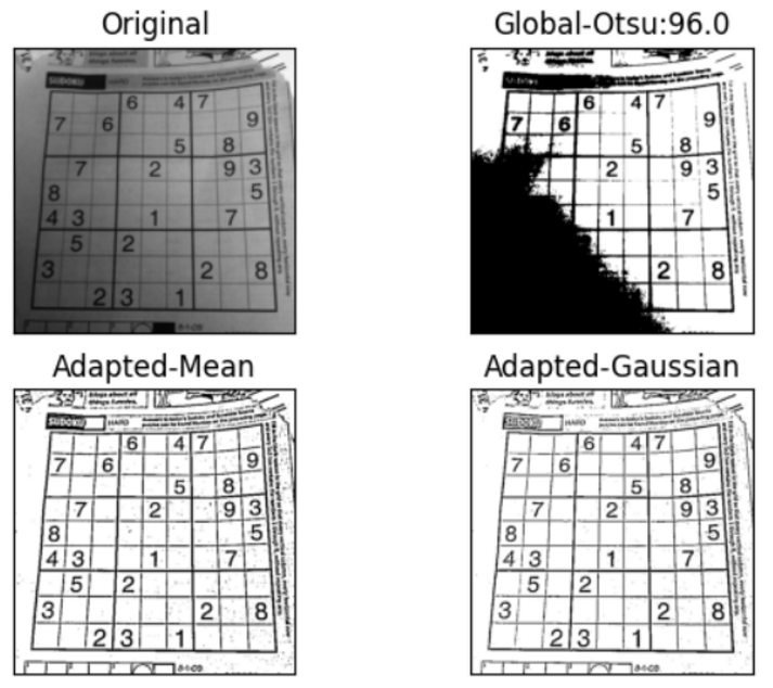 - cv2.ADPTIVE_THRESH_MEAN_C : 이웃 픽셀의 평균으로 결정
