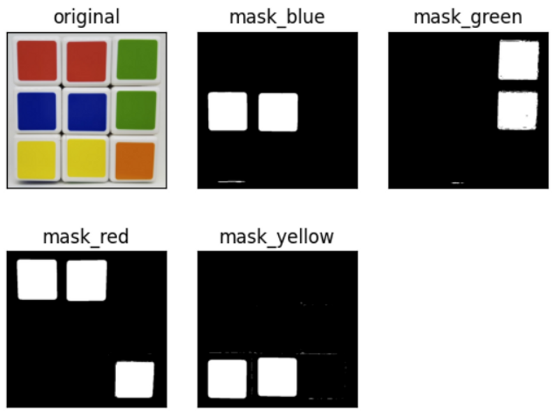 cv2.inRange() 함수를 호출해서 각 색상 범위별 마스크를 만든다. 함수의 반환 결과는 바이너리 스케일이 되어 cv2.bitwise_and() 함수의 mask로 사용하기 적합하다.