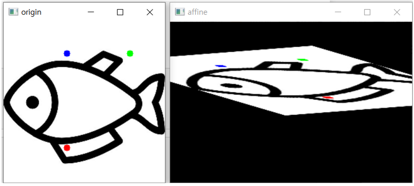 - pts2 : 변환 후 영상의 좌표 3개, pts1과 동일