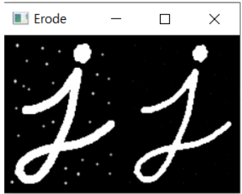 결과를 보면 글씨가 전반적으로 홀쭉해지긴 했지만 작은 흰 점들로 구성된 노이즈가 사라진 것을 알 수 있다.