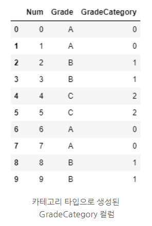 # astype('category') 사용 - 나오는 순서대로 0, 1, 2 ... 부여