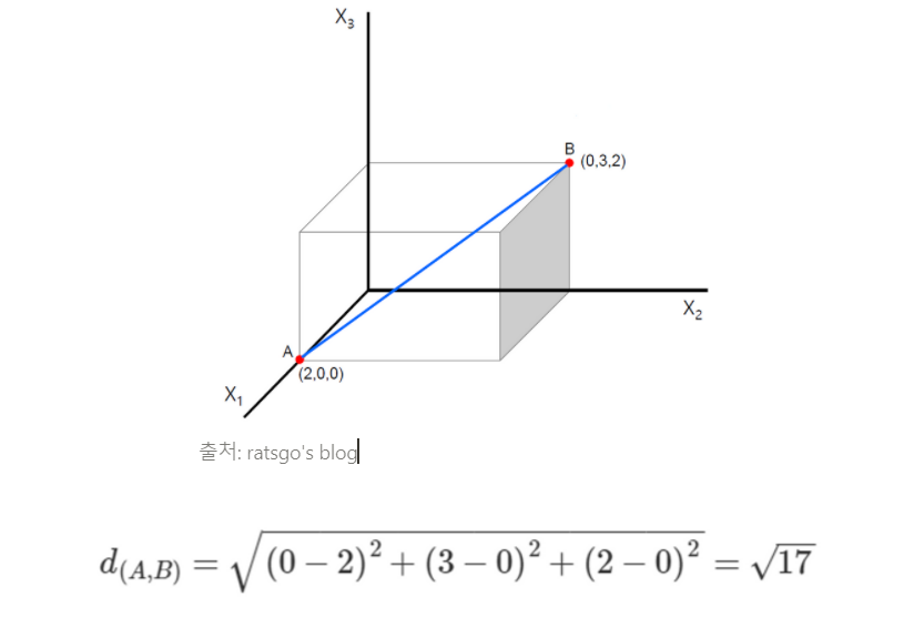 일반적인 점과 점사이의 거리를 구하는 방법이다.